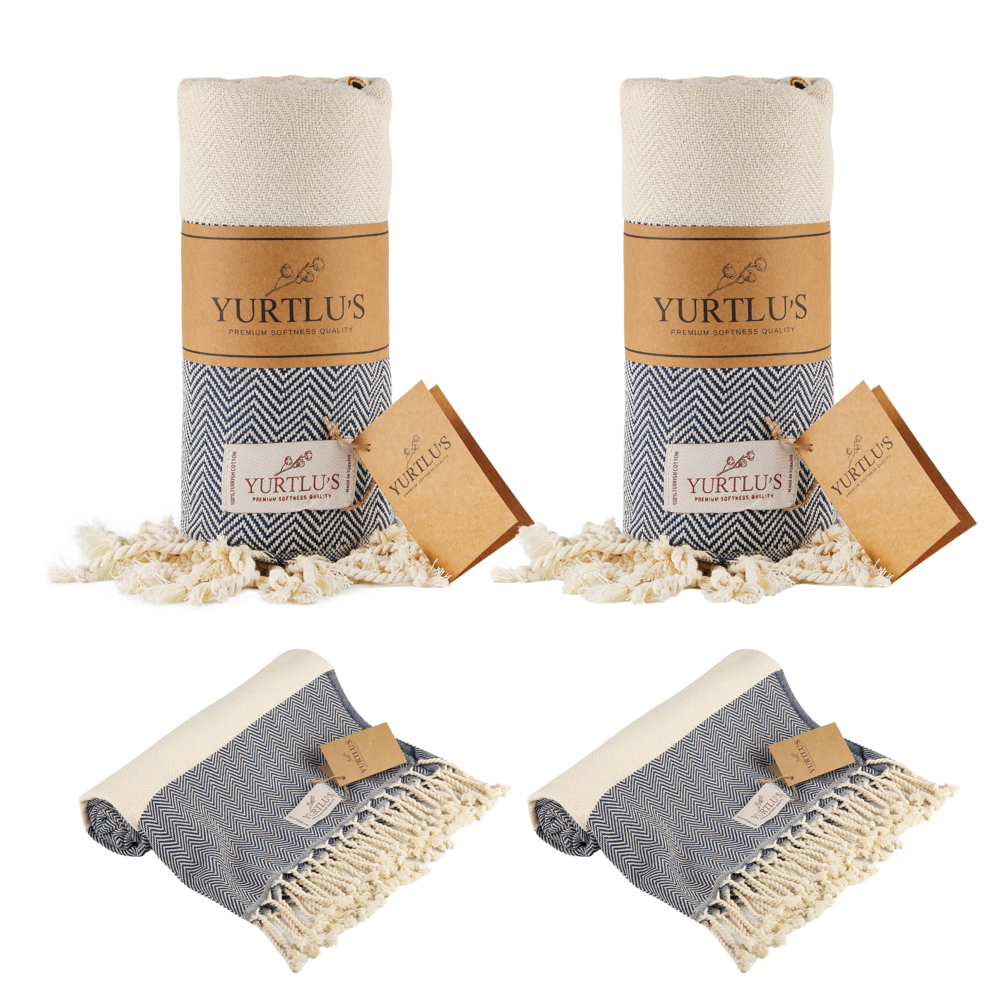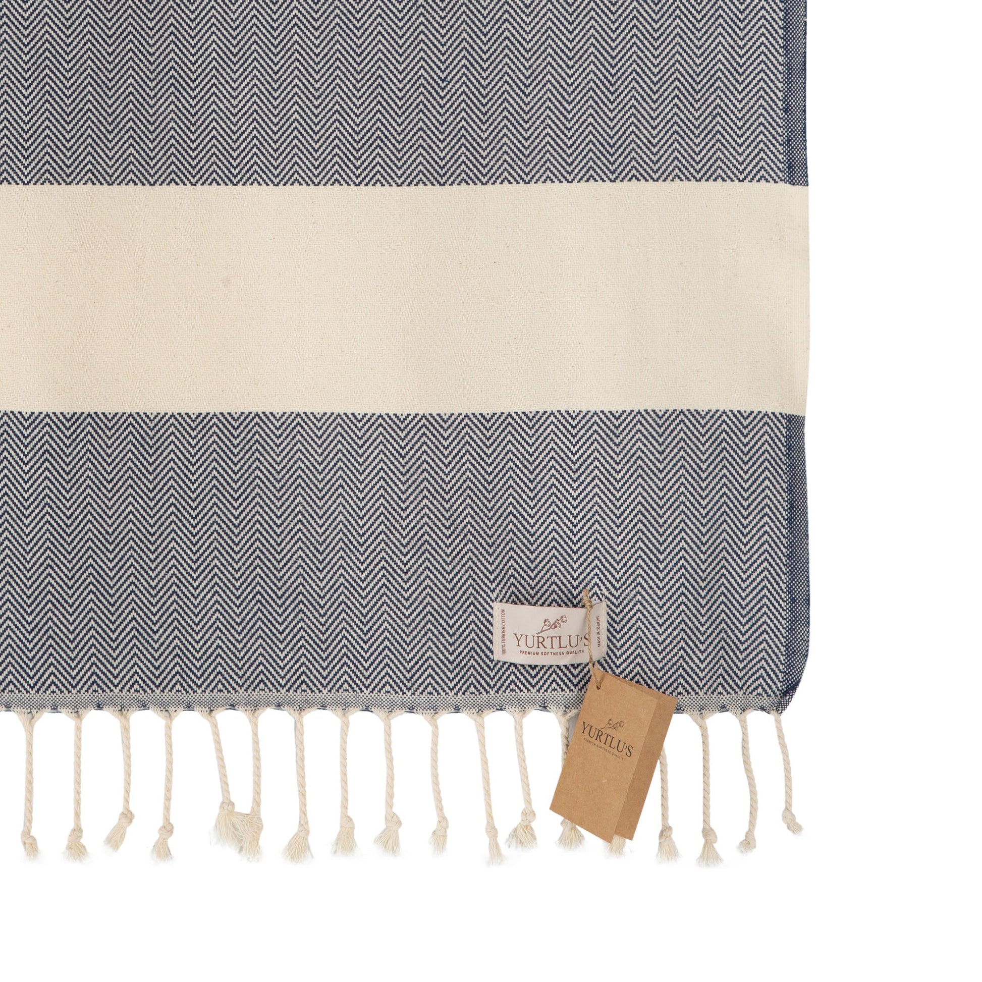|Pack of 2| YURTLU'S TURKISH COTTON Golden Sands Series Beach Towel - Navy | 71 x 37 in 100% Cotton