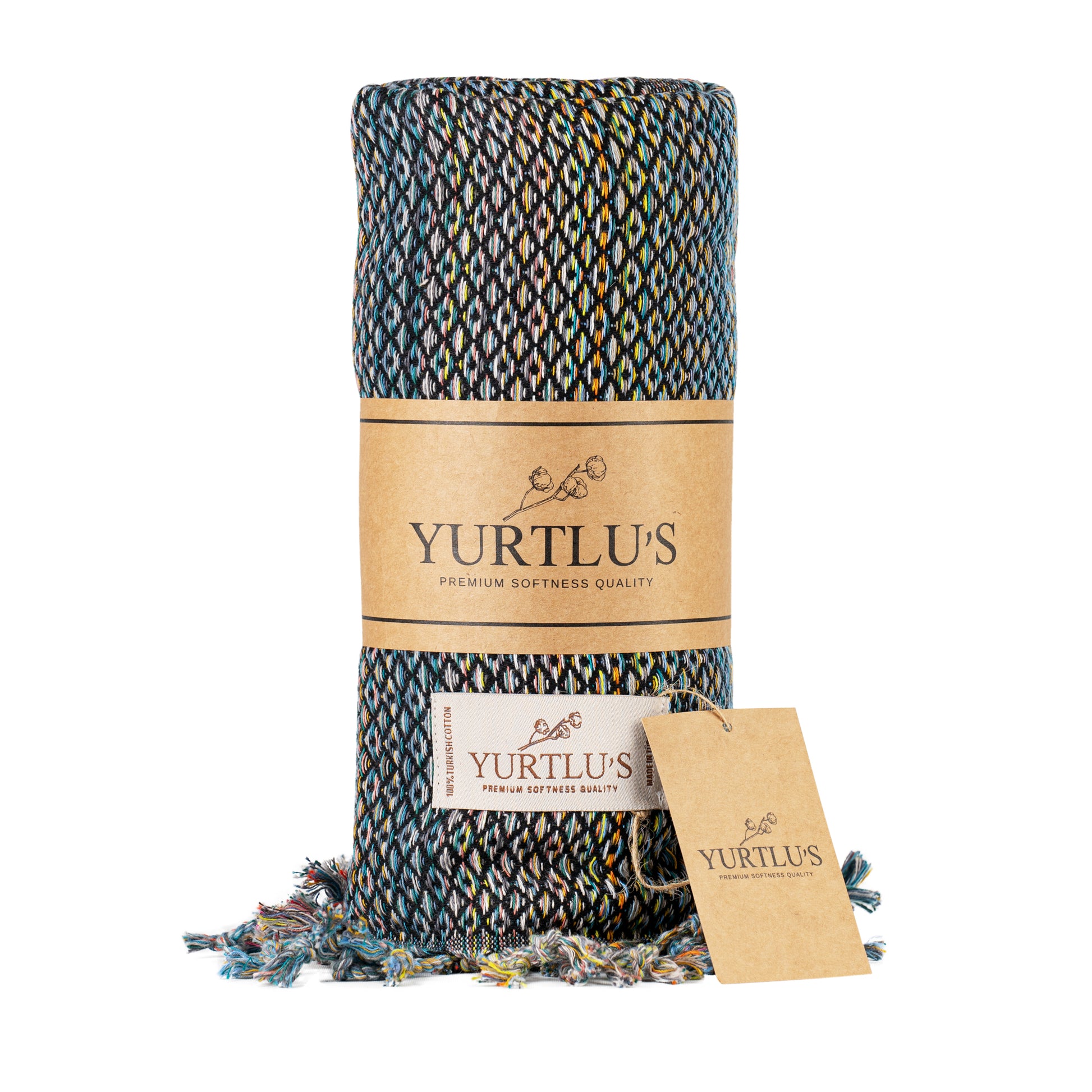Royal Series Pre-Washed 38"x72" Turkish Towel Highly Absorbent YURTLU'S - Black