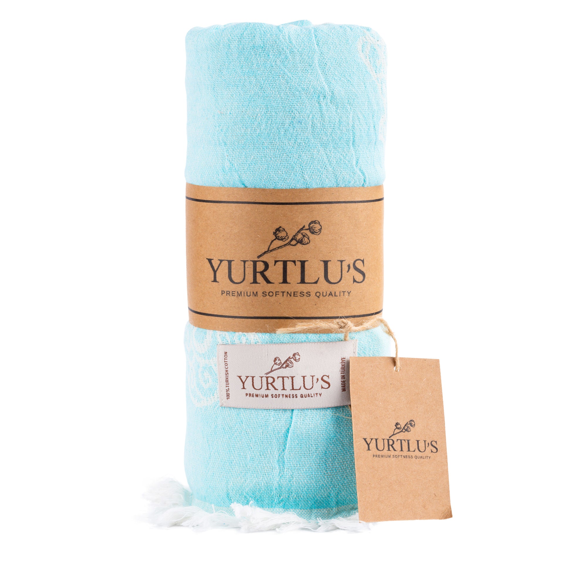Harmony Series Pre-Washed 38"x72" Turkish Towel Highly Absorbent YURTLU'S - Turquoise