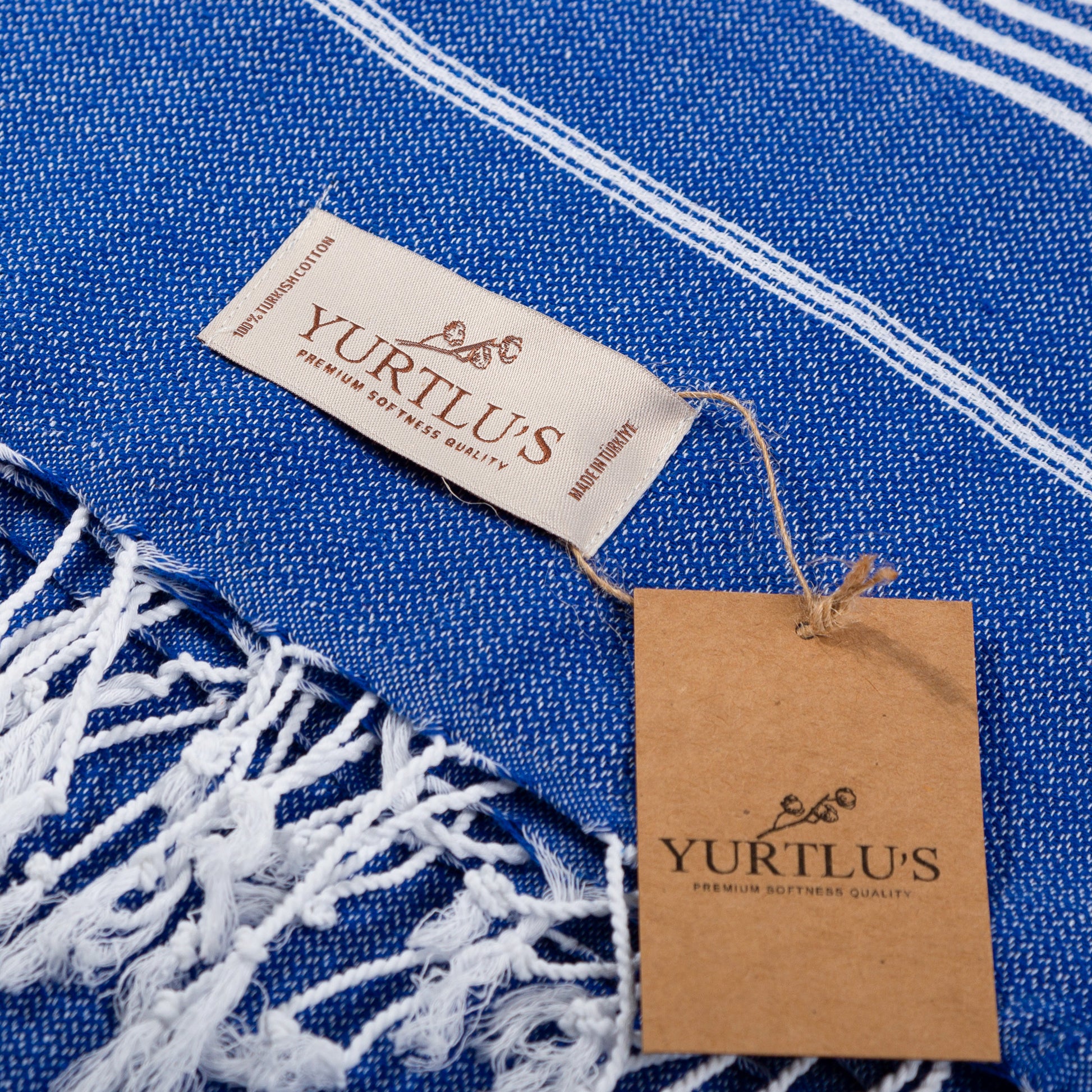 Minimalist Series Pre-Washed 38"x72" Turkish Towel Highly Absorbent YURTLU'S - Blue