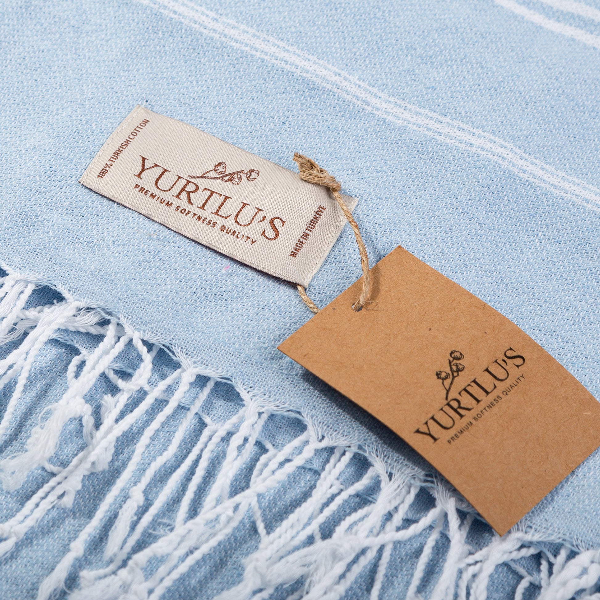Minimalist Series Pre-Washed 38"x72" Turkish Towel Highly Absorbent YURTLU'S - Light Blue