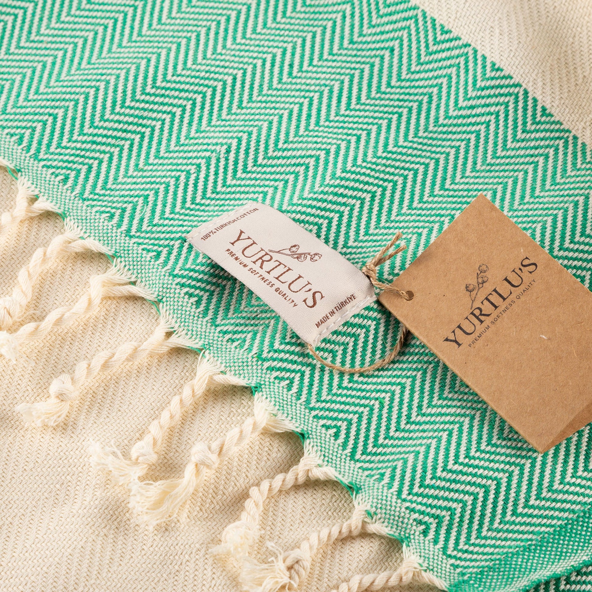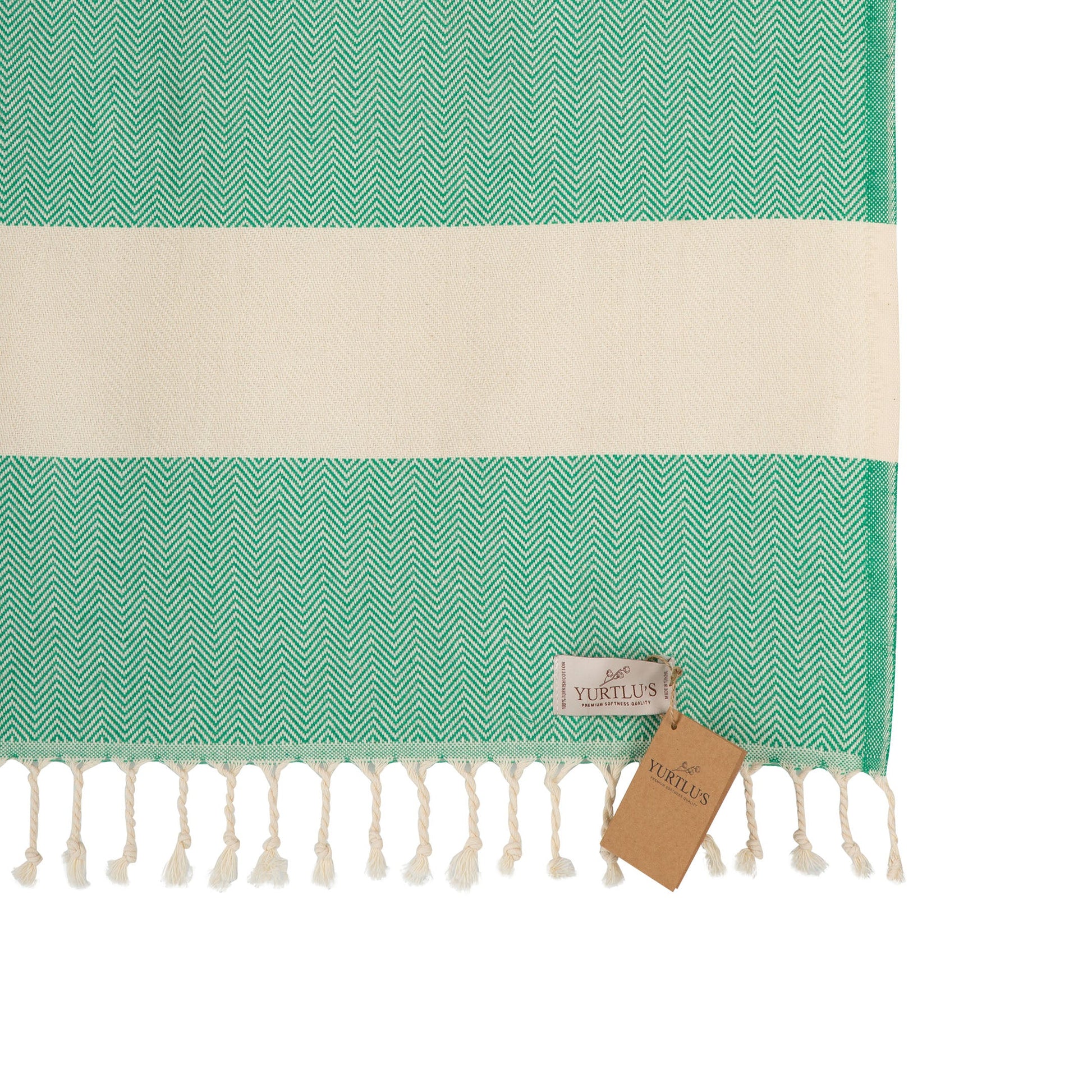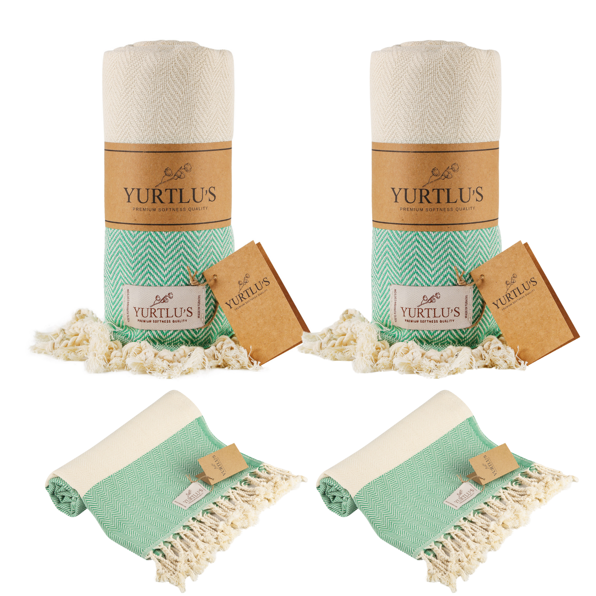 |Pack of 2| YURTLU'S TURKISH COTTON Golden Sands Series Beach Towel - Green | 71 x 37 in 100% Cotton
