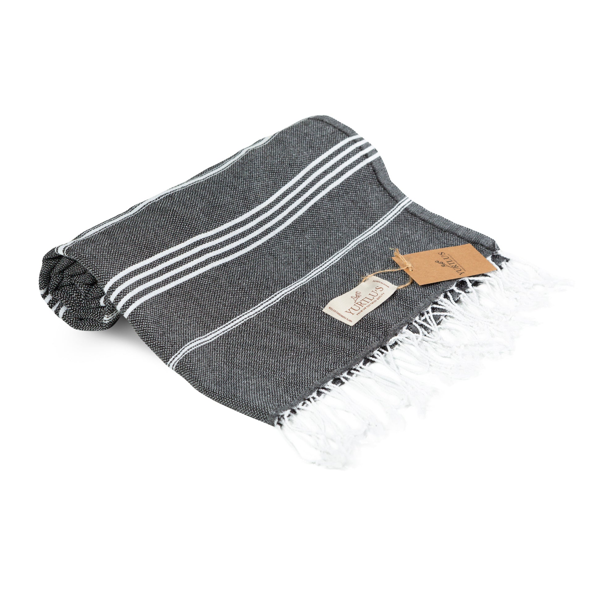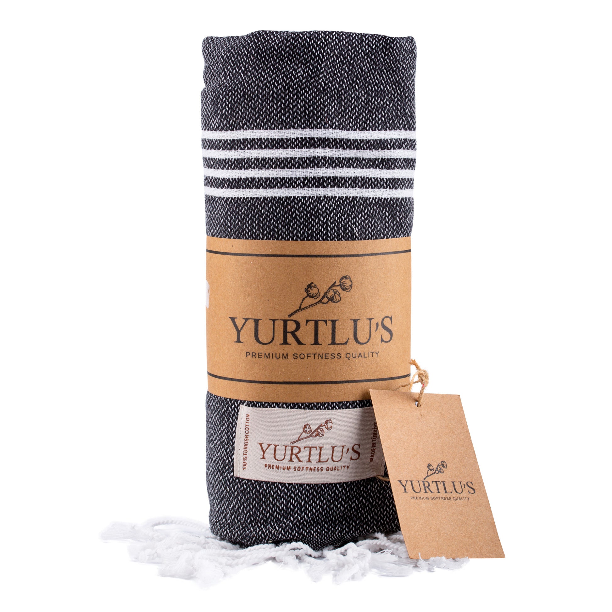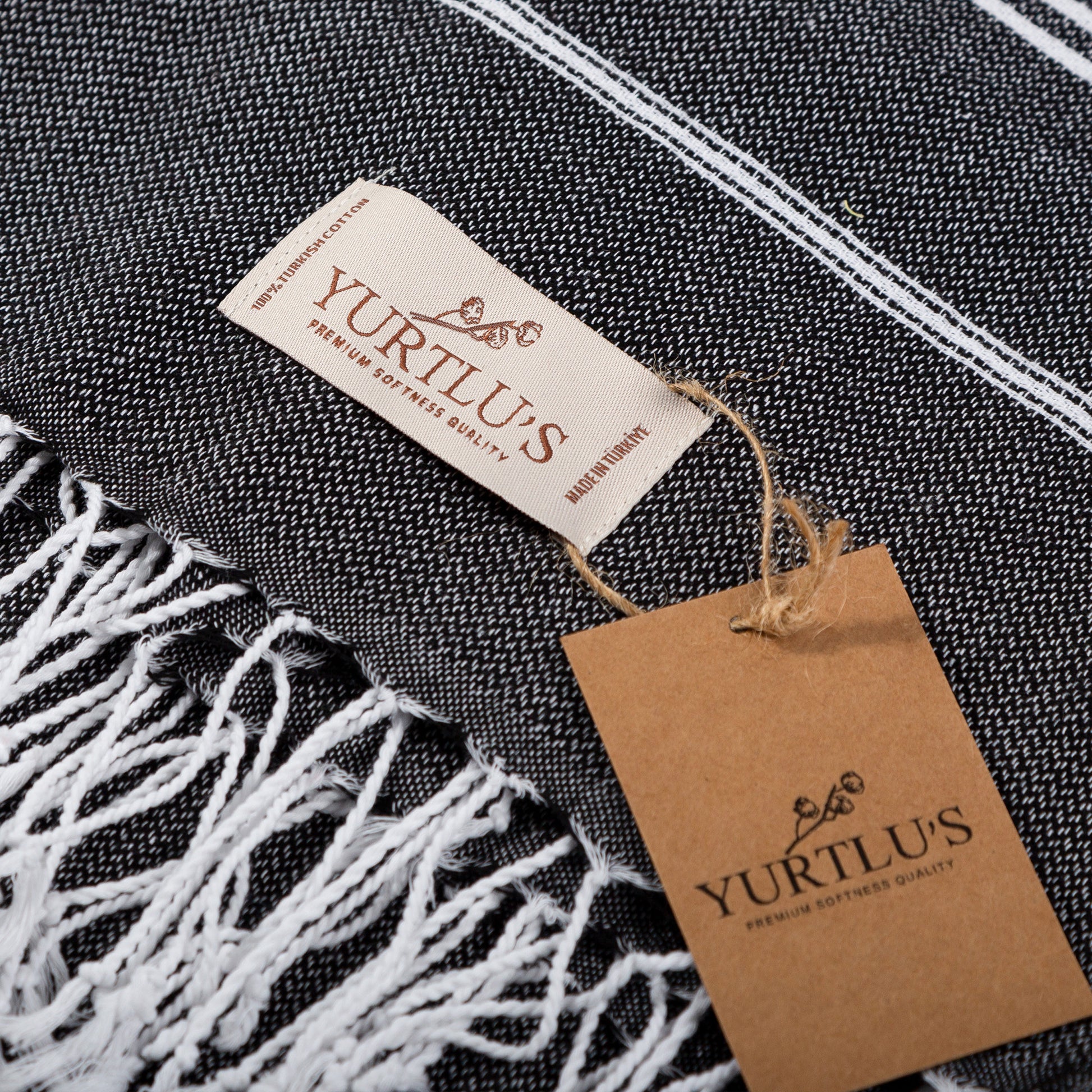 Minimalist Series Pre-Washed 38"x72" Turkish Towel Highly Absorbent YURTLU'S - Black