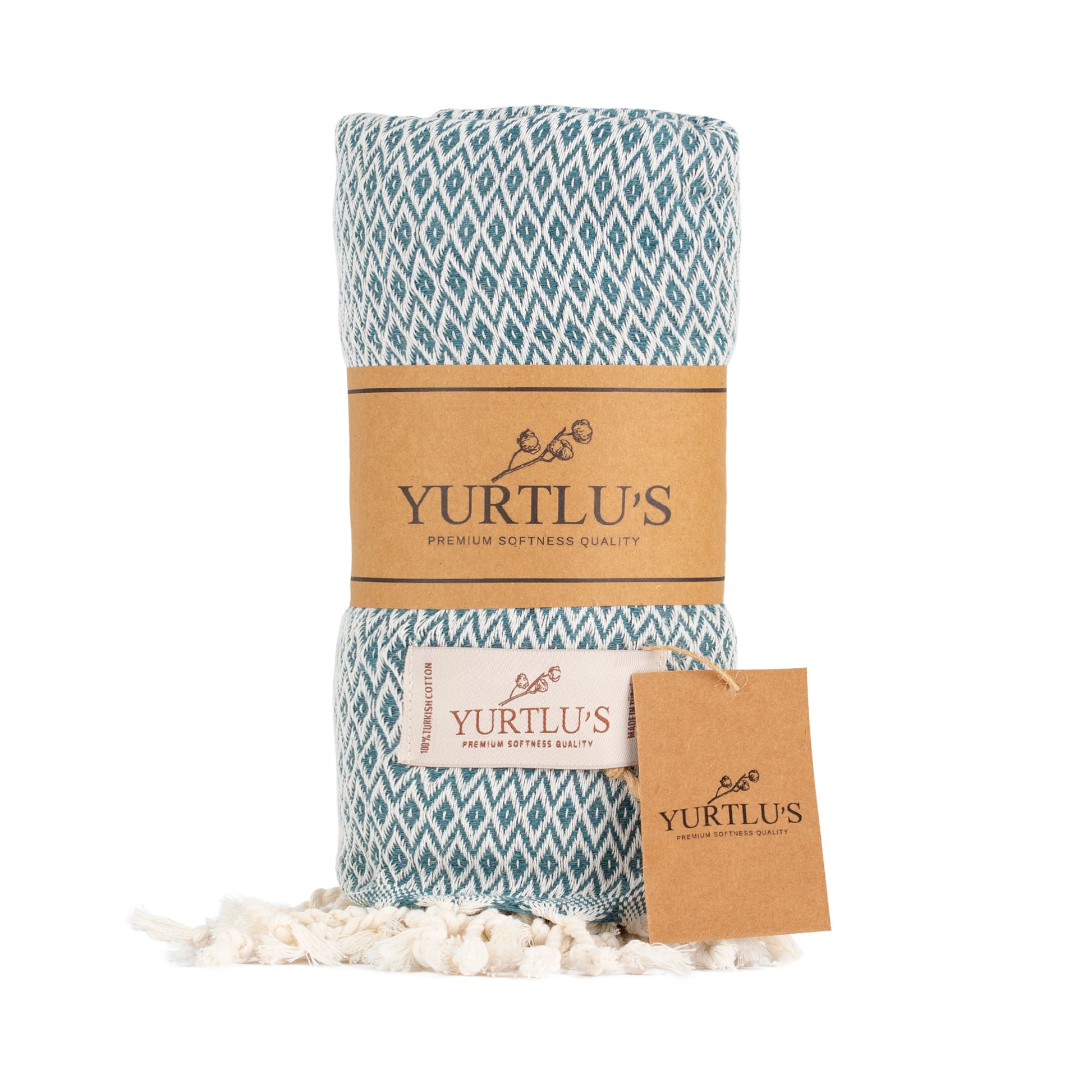 YURTLU'S Elegance Series Absorbent 38"x72" Turkish Towel Highly Pre-Washed - Petrol Blue