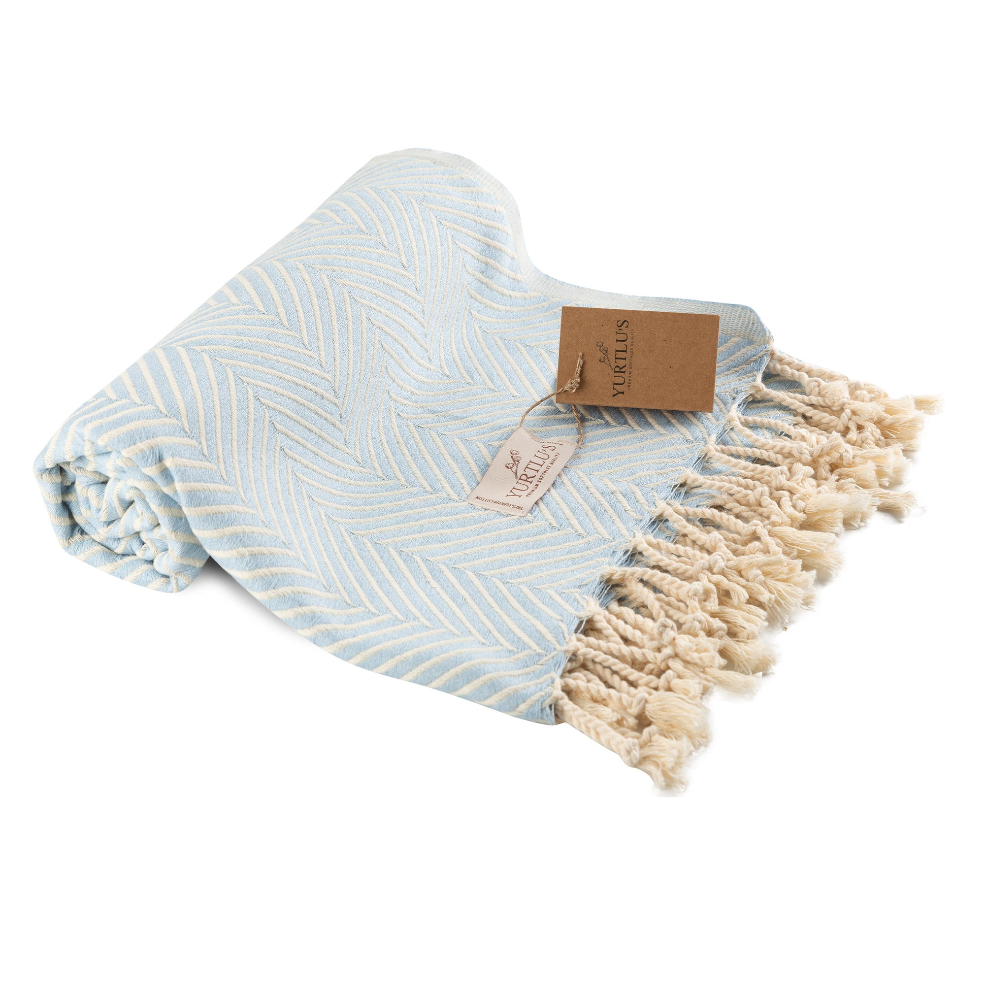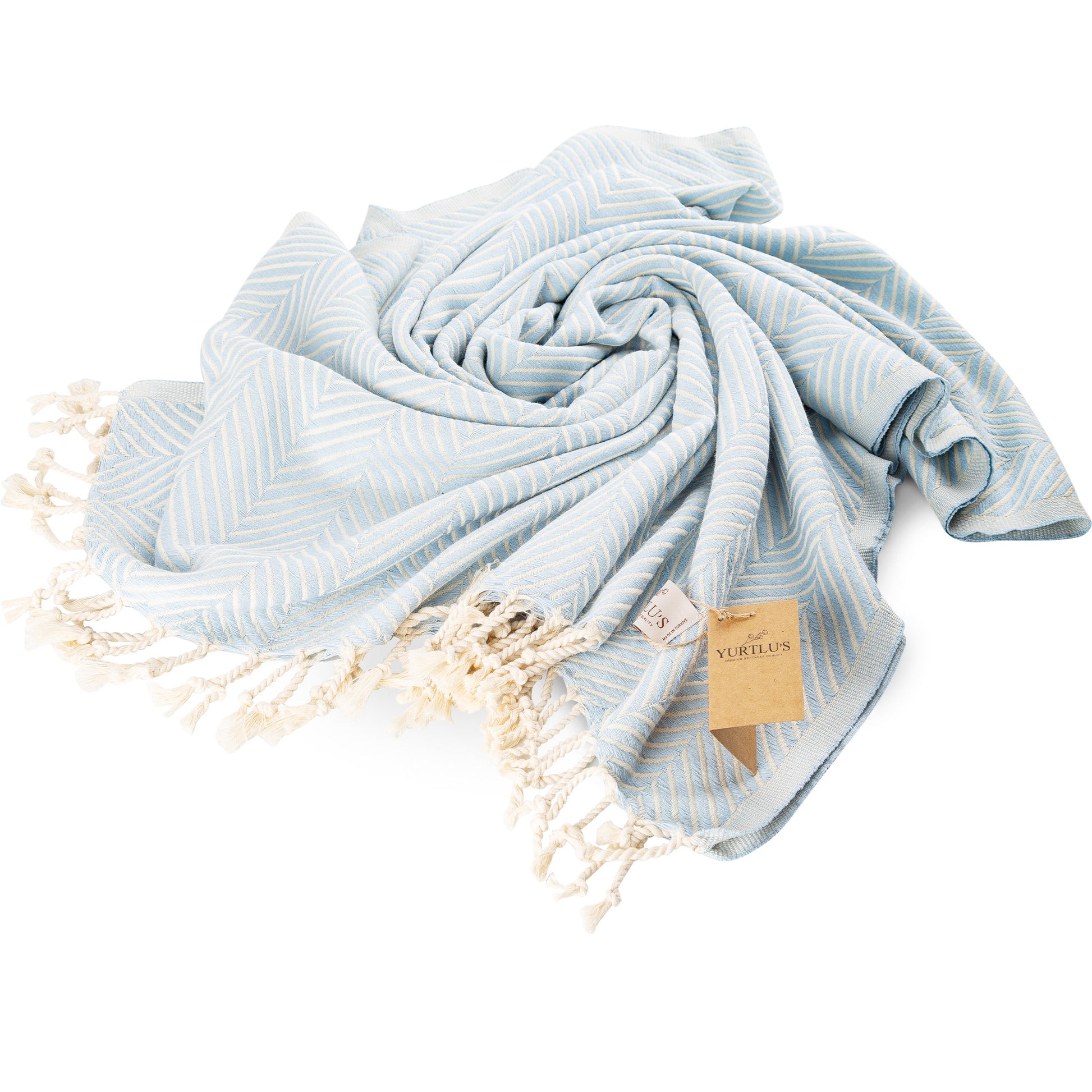 YURTLU'S Sapphire Sands Series Turkish Beach Towel Pre-Washed 38"x72" Quick Dry and Highly Absorbent Oversized Sand-Free Stylish and Versatile for Beach, Spa, and Home Light 100% Cotton Peshtemal