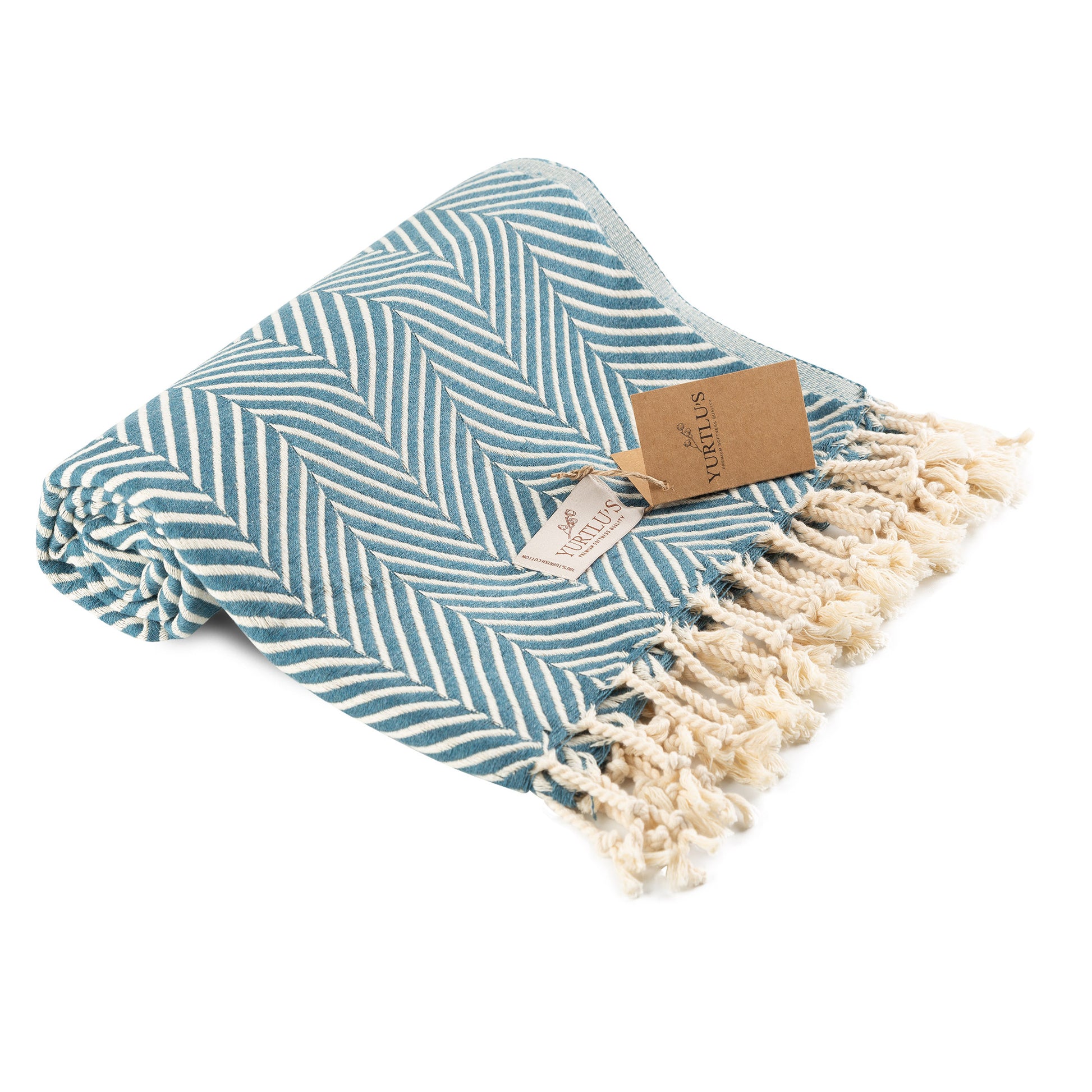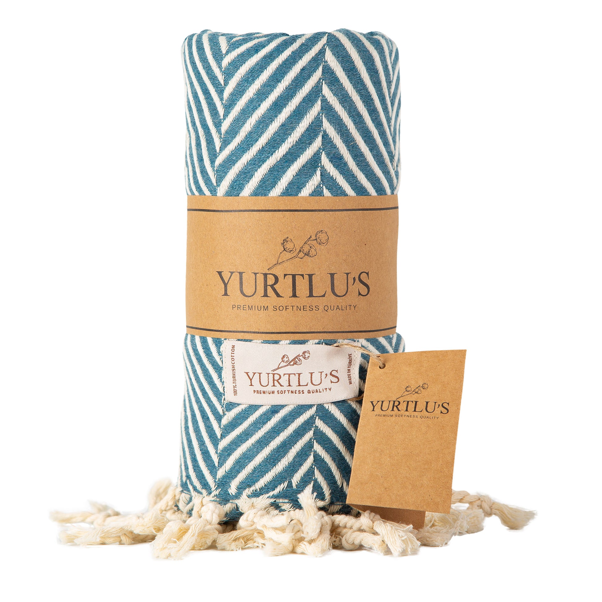 YURTLU'S Sapphire Sands Series Turkish Beach Towel Pre-Washed 38"x72" Quick Dry and Highly Absorbent Oversized Sand-Free Stylish and Versatile for Beach, Spa, and Home Light 100% Cotton Peshtemal