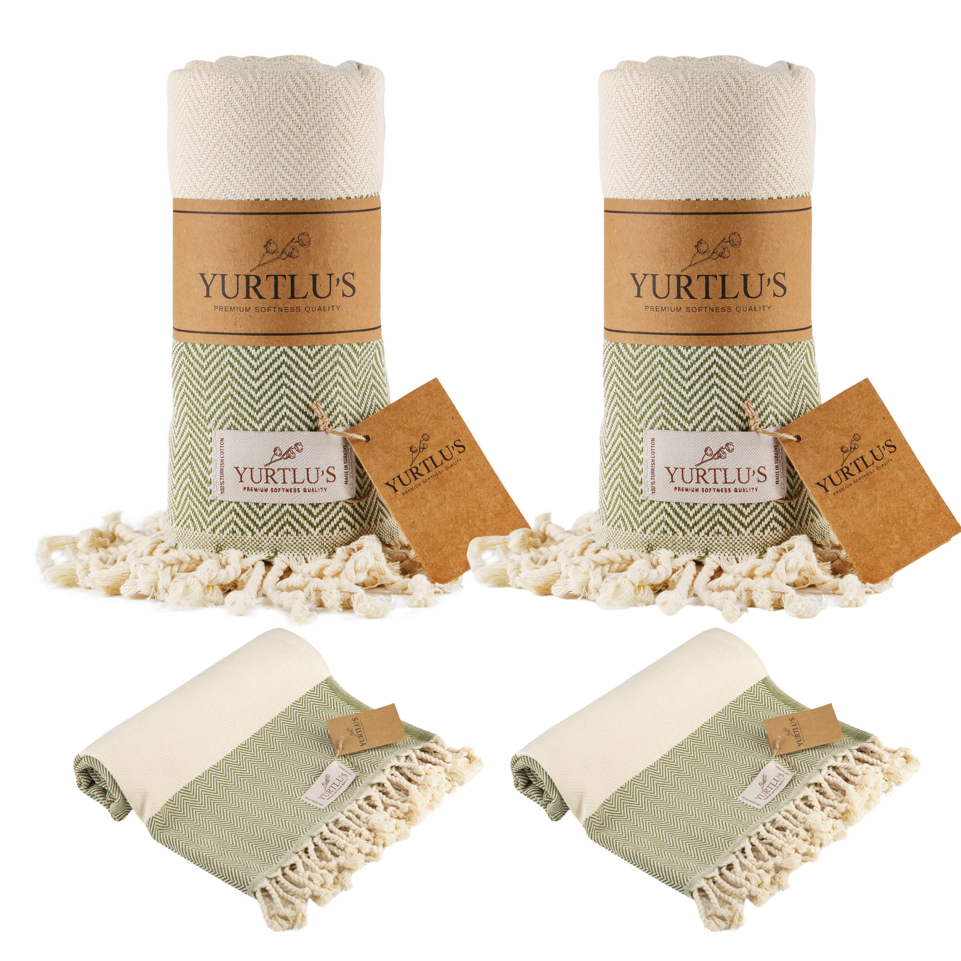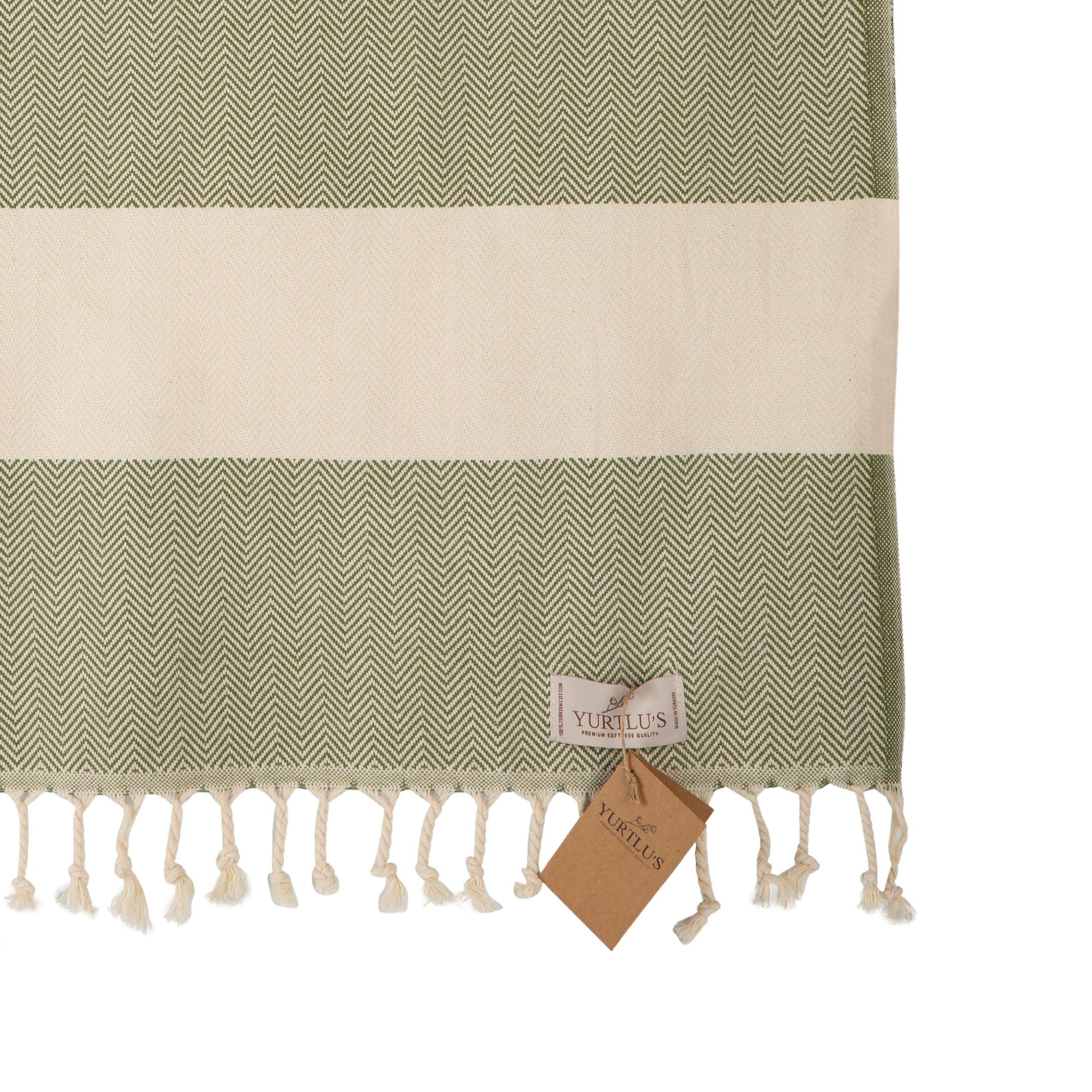 |Pack of 2| YURTLU'S TURKISH COTTON Golden Sands Series Beach Towel - Olive Green | 71 x 37 in 100% Cotton