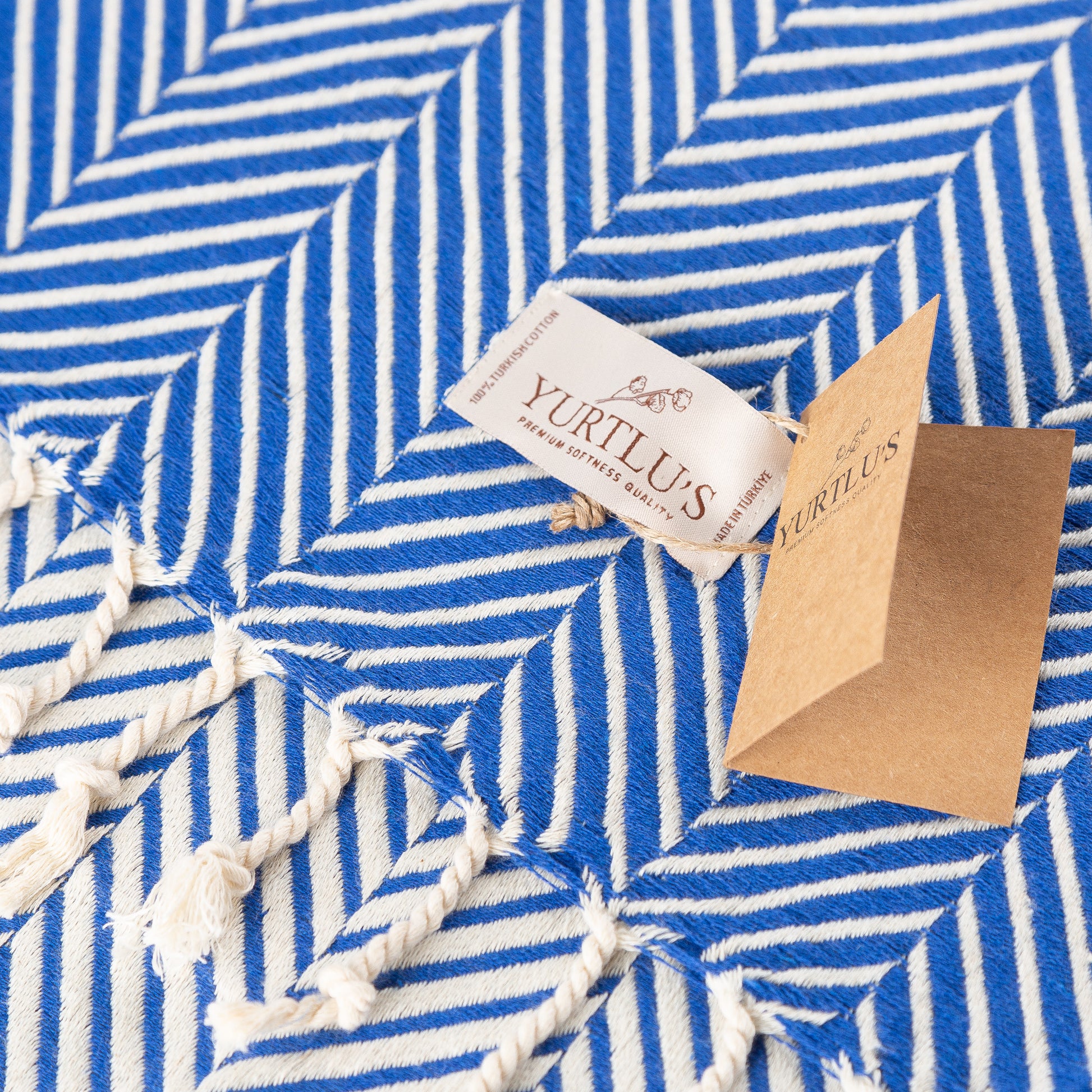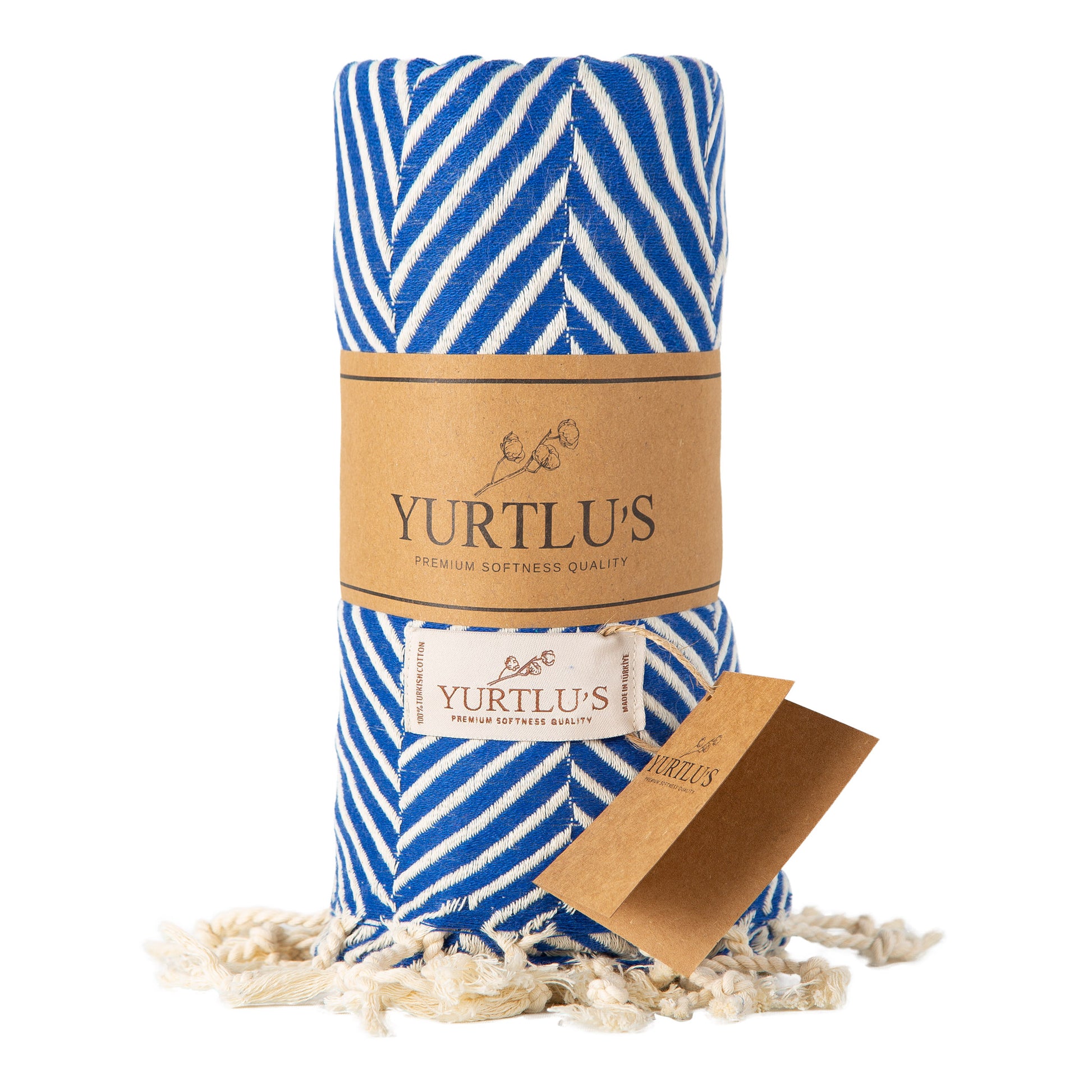 YURTLU'S Sapphire Sands Series Turkish Beach Towel Pre-Washed 38"x72" Quick Dry and Highly Absorbent Oversized Sand-Free Stylish and Versatile for Beach, Spa, and Home Light 100% Cotton Peshtemal