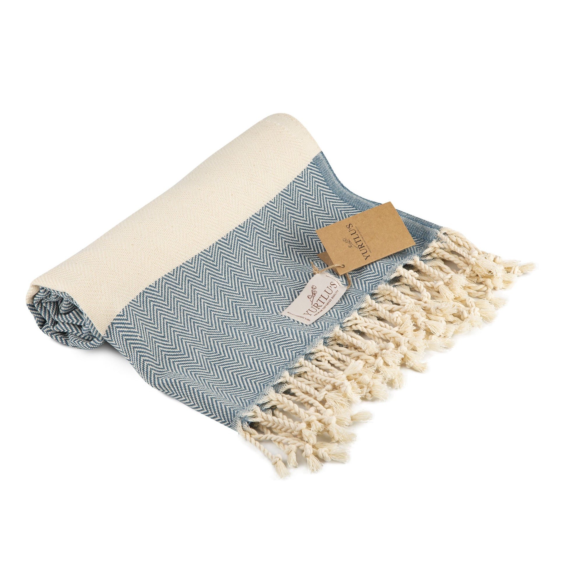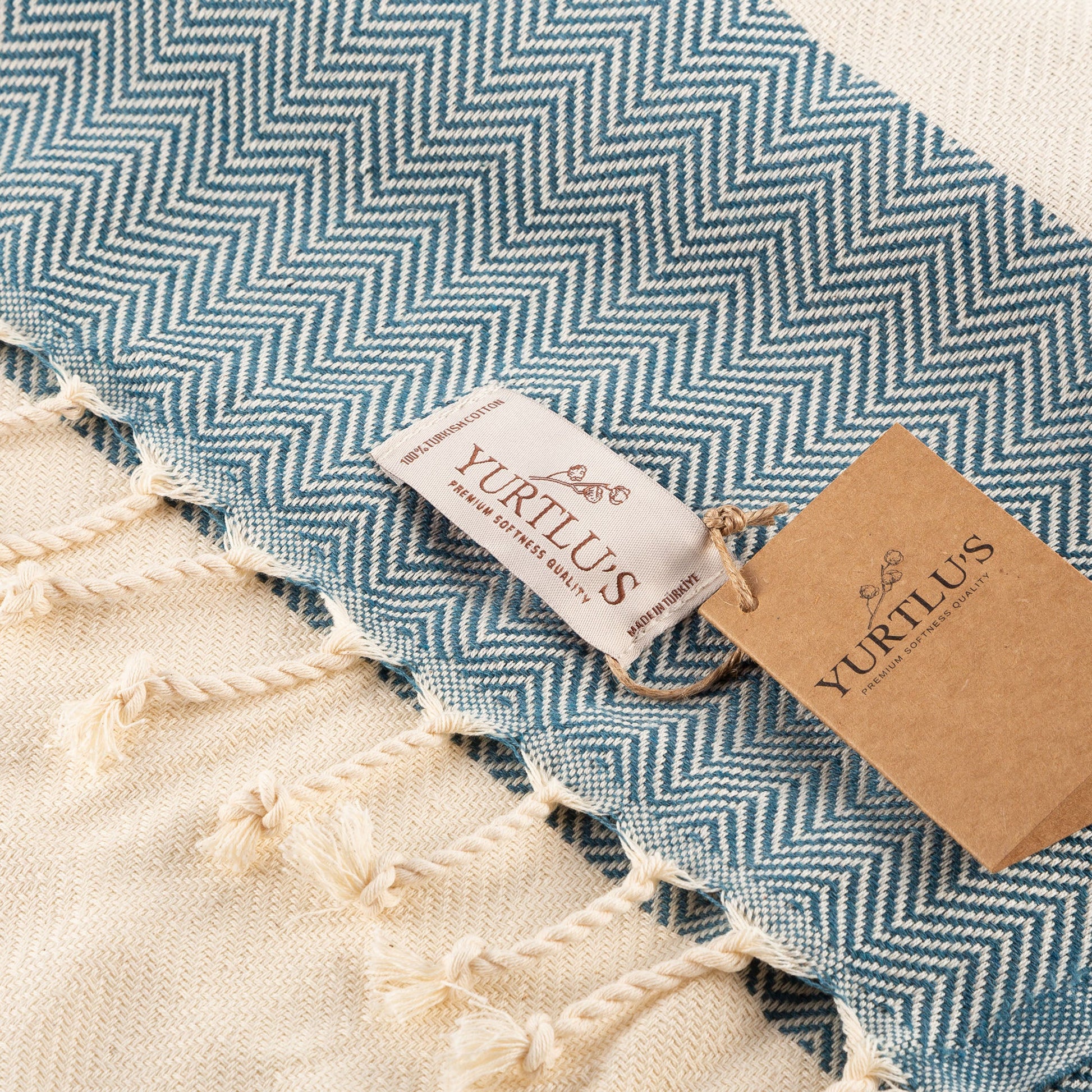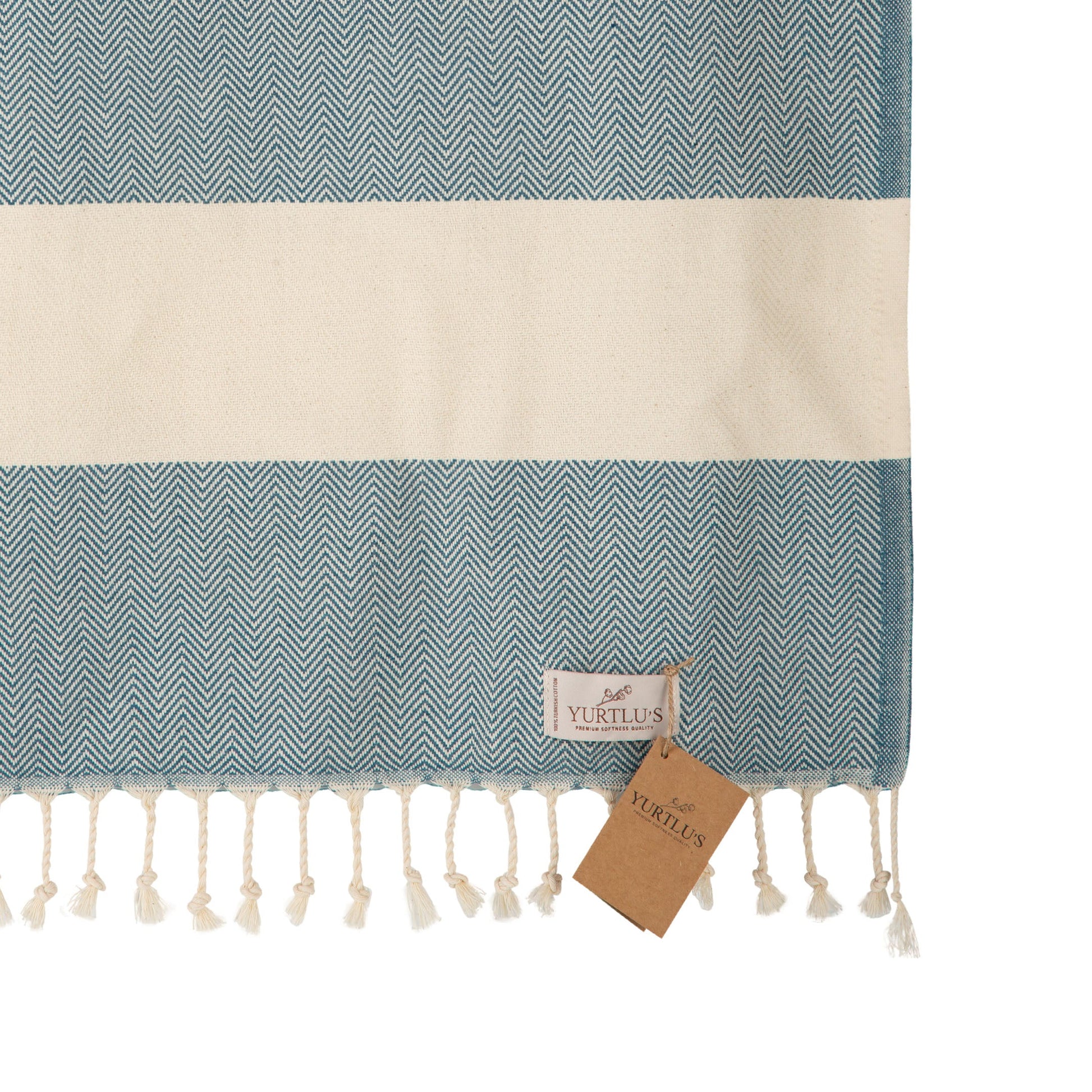 |Pack of 2| YURTLU'S TURKISH COTTON Golden Sands Series Beach Towel - Petrol Blue | 71 x 37 in 100% Cotton