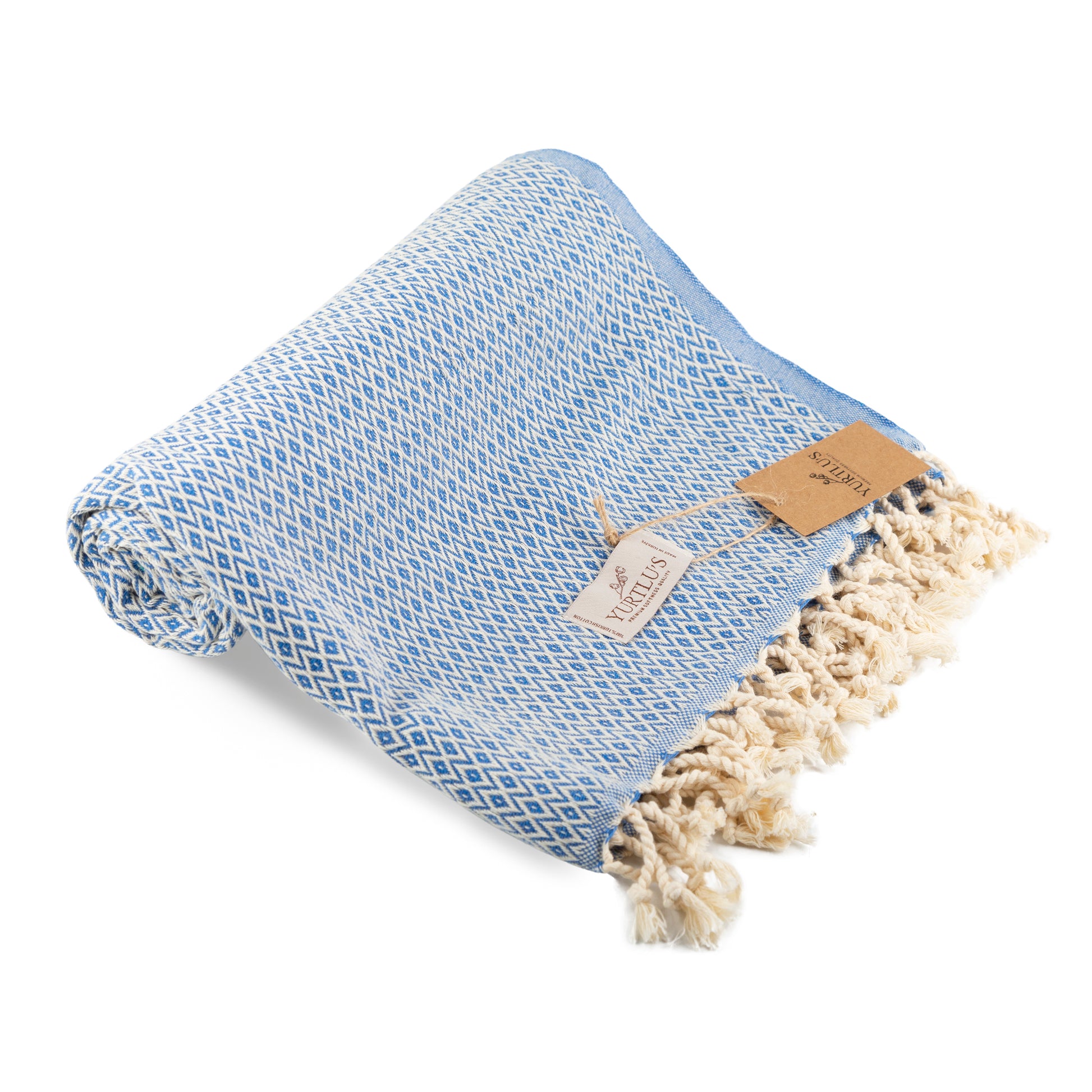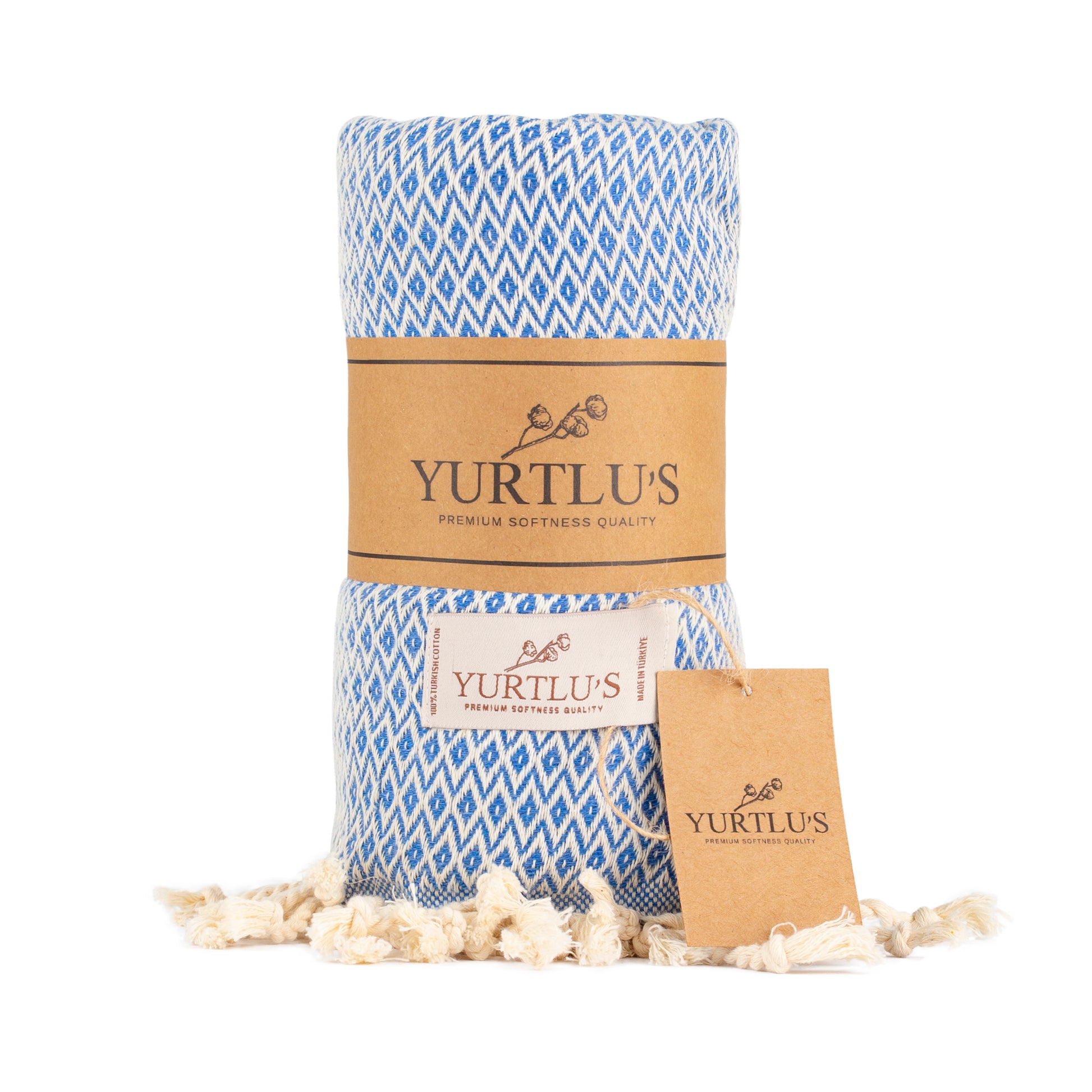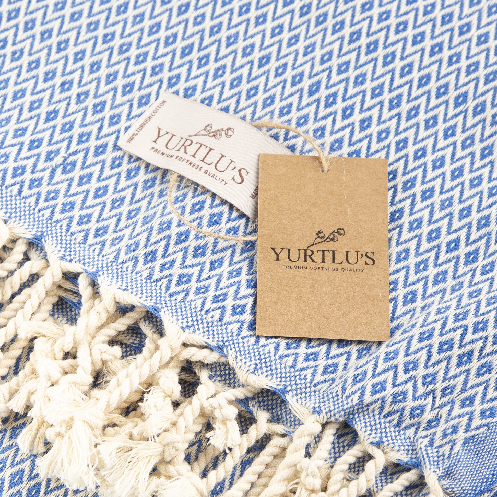 YURTLU'S Elegance Series Absorbent 38"x72" Turkish Towel Highly Pre-Washed - Blue